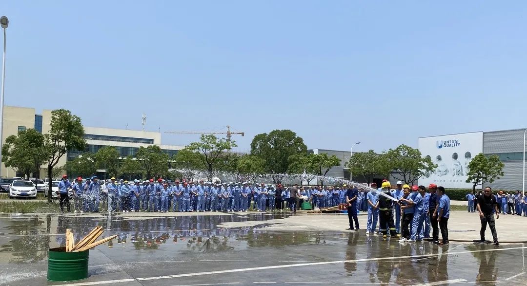 Ang Hunyo ngayong taon ay ang ika-20 na "Safety Production Month" sa bansa, na may temang "Implementing Safety Responsibilities and Promoting Safe Development". Upang mapagbuti ang kaligtasan at kalidad ng paglaban sa sunog, kaligtasan sa pag-iwas at kakayahan sa pagliligtas sa sarili ng lahat ng kawani, ngayong umaga, ang Uniquality Care & Kingsafe ay nagsagawa ng isang fire emergency safety drill sa tulong ng istasyon ng bumbero sa development zone.