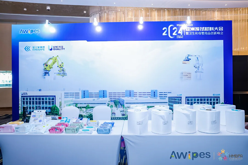 Ang 2024 Asia Wipe Material Conference & Hygiene at Maternal and Child Products Innovation Summit ay may espesyal na lugar ng eksibisyon, na nakatuon sa mga pinakabagong teknolohiya at produkto ng upstream at downstream na mga negosyo sa wiping material industry chain. Dinala ng Kingsafe Group & Youquan Co., Ltd. ang pinakabagong spunlace nonwovens, wet wipes, wet toilet paper, at malambot na tuwalya sa wiping conference.