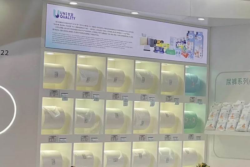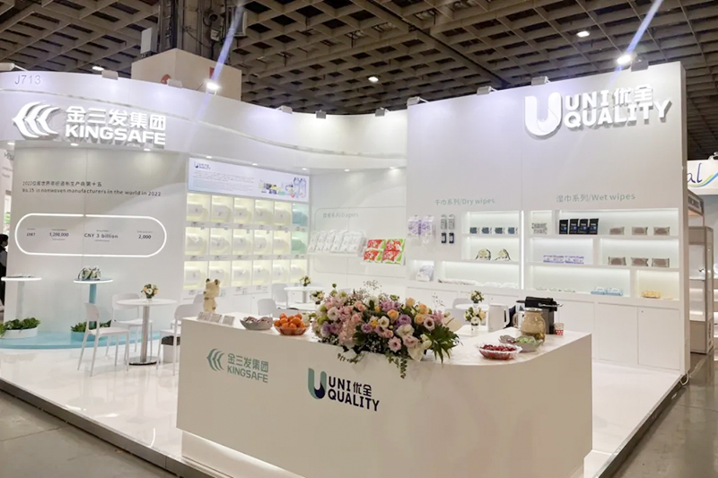 Ang mga produktong ipinakita ng Kingsafe Group & Youquan Care ay sumasaklaw sa mga wet wipe, cotton wipes, diaper, flushable wet toilet paper, spunlace nonwovens, spunmelt nonwovens at hot air nonwovens at iba pang sari-sari na produkto.