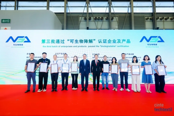 Sa pulong, si Sun Ruizhe, presidente ng China National Textile and Apparel Council, at Li Lingshen, vice president ng China National Textile and Apparel Council, ay nagbigay ng mga sertipiko sa mga kinatawan ng ikatlong batch ng mga negosyo na pumasa sa "biodegradable" na sertipikasyon.