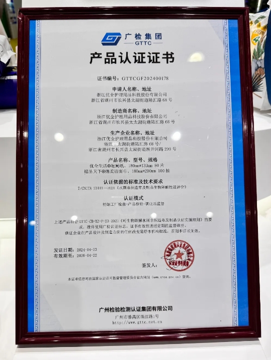 Sa unang araw ng CINTE24, ginanap sa Shanghai New International Expo Center ang ikatlong batch ng "biodegradable" na sertipikadong mga negosyo at seremonya ng pagpapalabas ng produkto. Ang Kingsafe Group & Youquan Co., Ltd. ay aktibong isinusulong ang napapanatiling pag-unlad ng industriya, na nagsisilbing vice chairman unit ng Green Development Innovation Alliance ng Nonwovens Industry, at ang basang toilet paper na binuo at inilunsad ay pumasa sa "biodegradable " sertipikasyon, na naging saksi sa paggalugad at pagbabago ng industriya upang isulong ang berdeng pag-unlad.